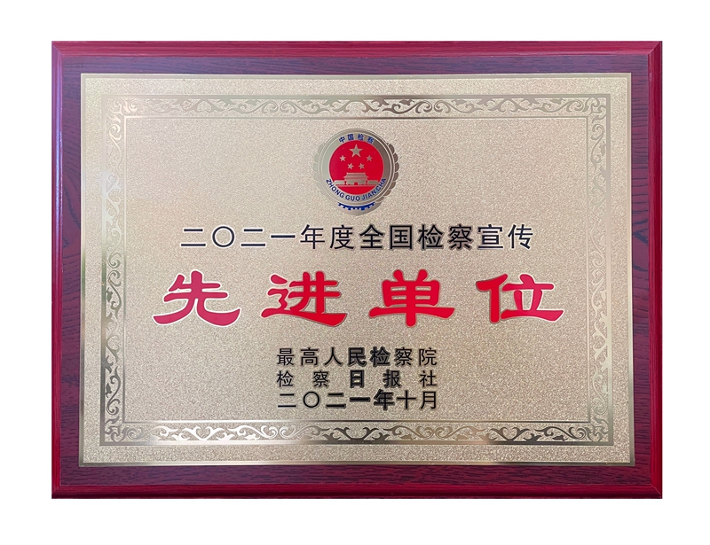 太仓市人民检察院被最高人民检察院检察日报社评为“2021年度全国检察宣传先进单位”,这是我院连续第十二年获此荣誉。